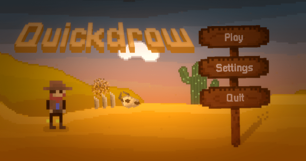 Based on the name (Quickdraw), I decided to give the game a western shootout type theme, and I opted for pixel art because, to put it simply, it seemed easier (my art skills are not the best). This game gave me a chance to try and develop my art skills, and I’d say I haven’t done a bad job. And now for a little bit of technical stuff.